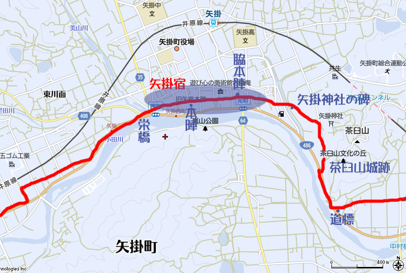矢掛宿を通過しました。 西のはずれの高通川を渡ります。 |