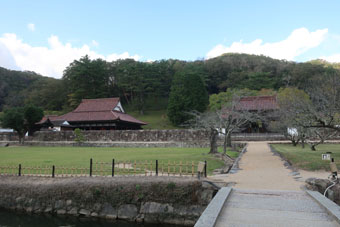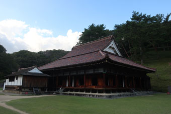 ![]() 講堂 付属の白壁の建物は、藩主訪問時の 休憩室だとか。 |