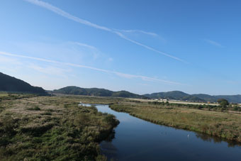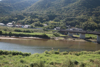 高梁川を渡ります。 遠くに井原鉄道の鉄橋が見えます。 川を渡ると倉敷市、旧真備町に入ります。 |