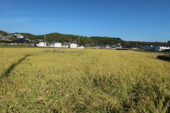この辺りは水田地帯です。 | ![]() 稲刈り前の田んぼ |