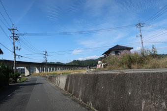 琴弾橋が見えて来ました。 この近くの巨岩の上で、晩年の吉備真備が琴を弾いたという伝説に由来する橋です。 |