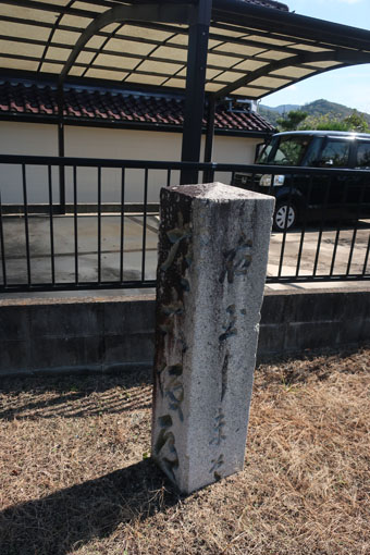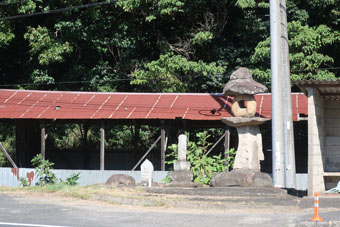 国道沿いの金網の向こうによく分からない石碑がありました。 街道は国道をはずれ、矢掛神社の前で左に折れます。 |