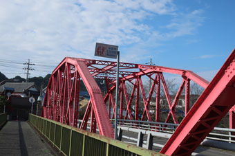 見学のお礼を言って旅を再開します。 小田川に架かるこの橋は、大正15年に完成したトラス橋で、現存するものとしては、岡山県最古のトラス橋なんだそうです。 江戸時代、この橋の50m下流に木橋が架けられましたが、洪水で流出したため、架け替えられたそうです。 |