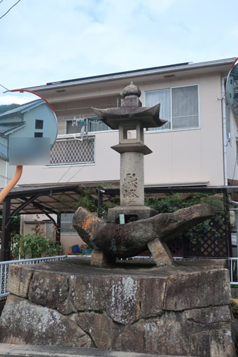 舟の形をした石に乗った常夜灯がありました。 珍しい形です。 |