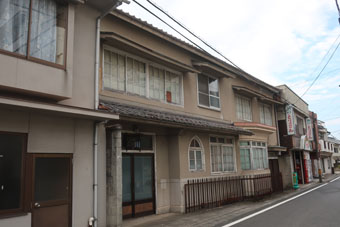 裏には新道があり、お店の入口がありました。 今は酒造を止めて知り合いの蔵に製造委託しているそうですが、かつては「松の操」というお酒を造っていた、山陽酒造さんの建物でした。 |