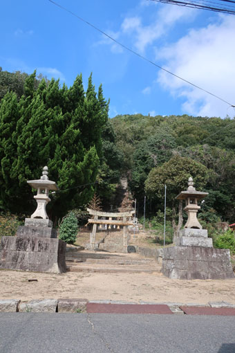 次にあったのが、素戔嗚尊神社の常夜燈です。 素戔嗚尊神社ですが、天平年中(729〜49)、備後国司・小治田諸人の創建と伝えられる古社です。 応仁年中(1467頃)社殿大破したため、氏子等が小社を建てたそうです。 永禄年中(1558〜70)、毛利元就が再建命じ、杉原盛重が社領三貫を寄進しましたが、福島正則に没収されたそうです。 お次は急な石段がある日吉神社の前を通過しました。 |