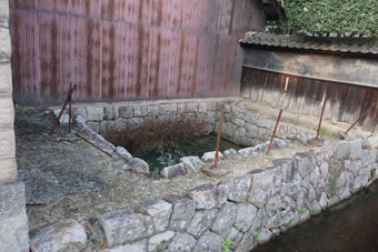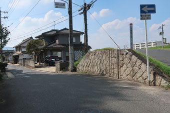 いよいよ神辺宿の入口までやって来ました。 宿場の入口に、高屋川の増水から宿場を守るための止水板を入れた跡がありました。 東海道島田宿でも同じようなものがありましたねえ。 |