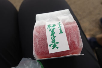 廉塾横の和菓子屋さんで、茶山まんじゅうと羊羹を頂きました。 | ![]() |