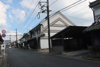街道は左に折れて神辺駅の方に向かいます。 そこにも白壁の街並みが続いていました。 |