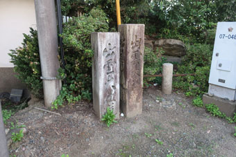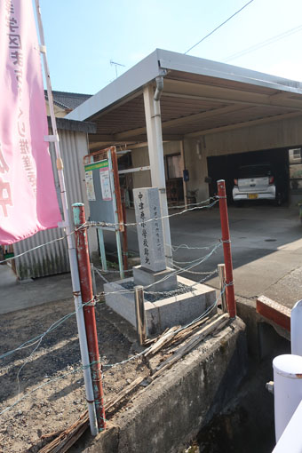 区画整理された街並みを抜け、高屋川を渡ります。 古市荒神社の境内内に、一里塚跡の石碑が建てられていました。 |