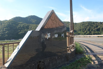 あまりの暑さにコンビニで買った「ガリガリ君」をかじりつつ、 ついに芦田川を渡ります。 | ![]() 芦田川 |